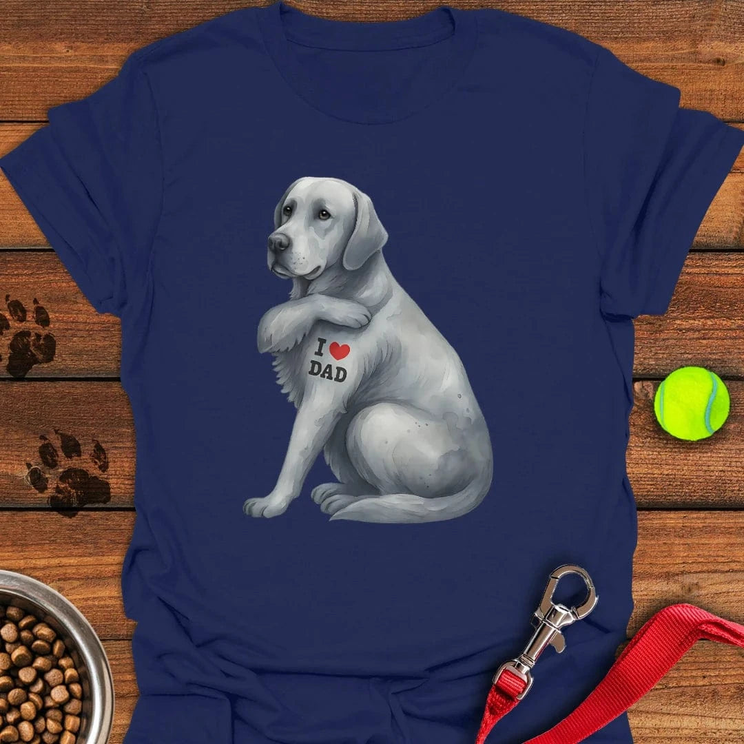 Silver Labrador I Love Dad T-Shirt Classic Dog Clothes Unique Gifts For Animal Lovers. T-Shirt printed in the USA Exclusive products made by: Petshi. Material: 5.3-ounce, 100% cotton. Seamless double-needle 7/8. Taped neck and shoulders; Tearaway label. Decoration type: Digital Print. All products are made to order and proudly printed to the best standards available….