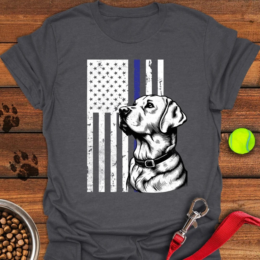 Thin Blue Line Police Labrador T-Shirt Playful Dog Apparel Good Presents For Dog Lovers. T-Shirt printed in the USA Exclusive products made by: Petshi. Material: 5.3-ounce, 100% cotton. Seamless double-needle 7/8. Taped neck and shoulders; Tearaway label. Decoration type: Digital Print. All products are made to order and proudly printed to the best standards available….