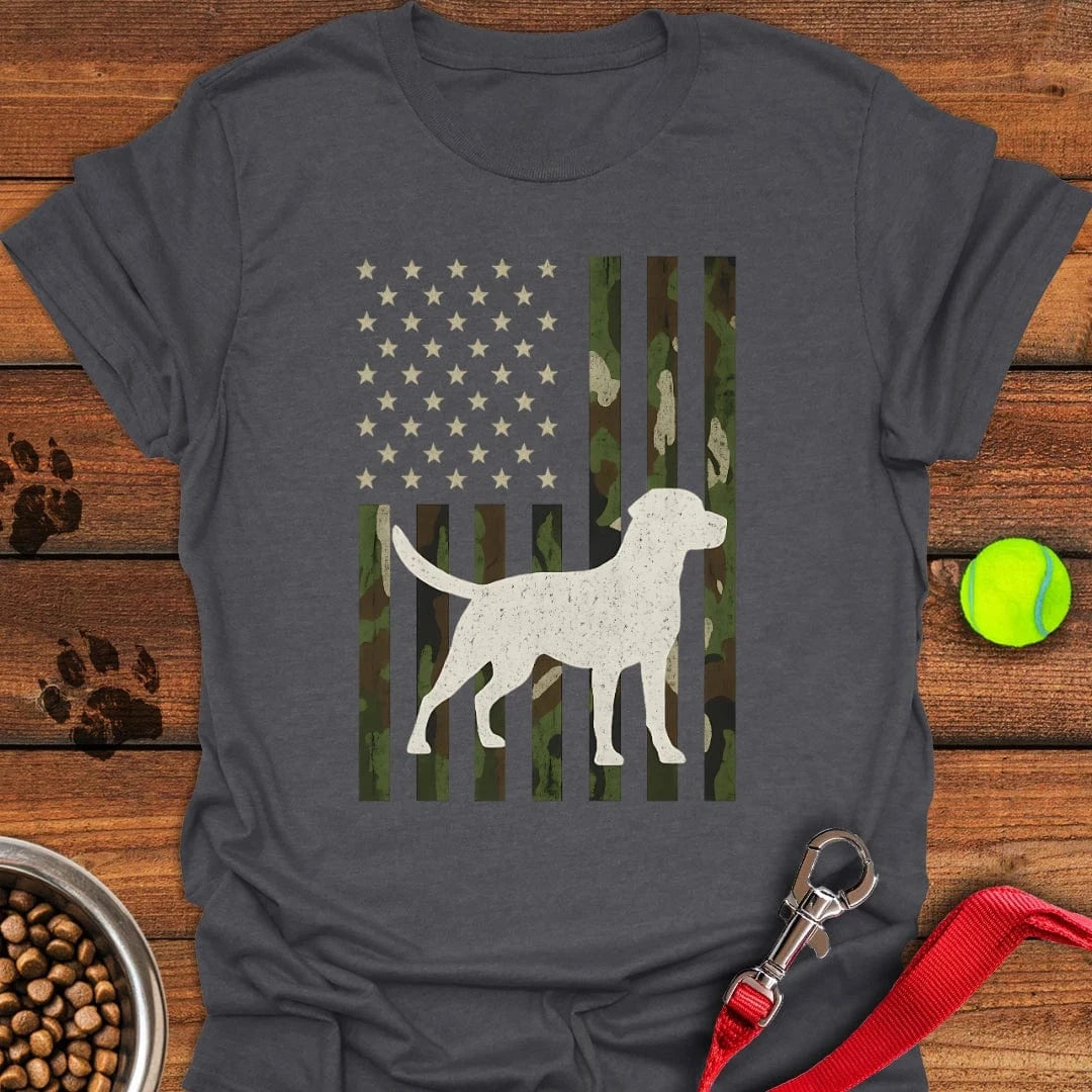 USA Labrador Hunting Camo T-Shirt Gentle Dog Clothes Dog Themed Gifts. T-Shirt printed in the USA Exclusive products made by: Petshi. Material: 5.3-ounce, 100% cotton. Seamless double-needle 7/8. Taped neck and shoulders; Tearaway label. Decoration type: Digital Print. All products are made to order and proudly printed to the best standards available. They do not…