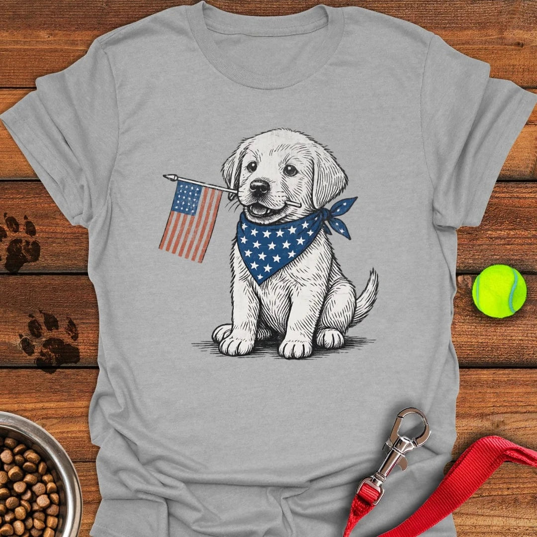 Cute Labrador Puppy USA Flag T-Shirt Lazy Dog Apparel Best Gifts For New Dog Owners. T-Shirt printed in the USA Exclusive products made by: Petshi. Material: 5.3-ounce, 100% cotton. Seamless double-needle 7/8. Taped neck and shoulders; Tearaway label. Decoration type: Digital Print. All products are made to order and proudly printed to the best standards…