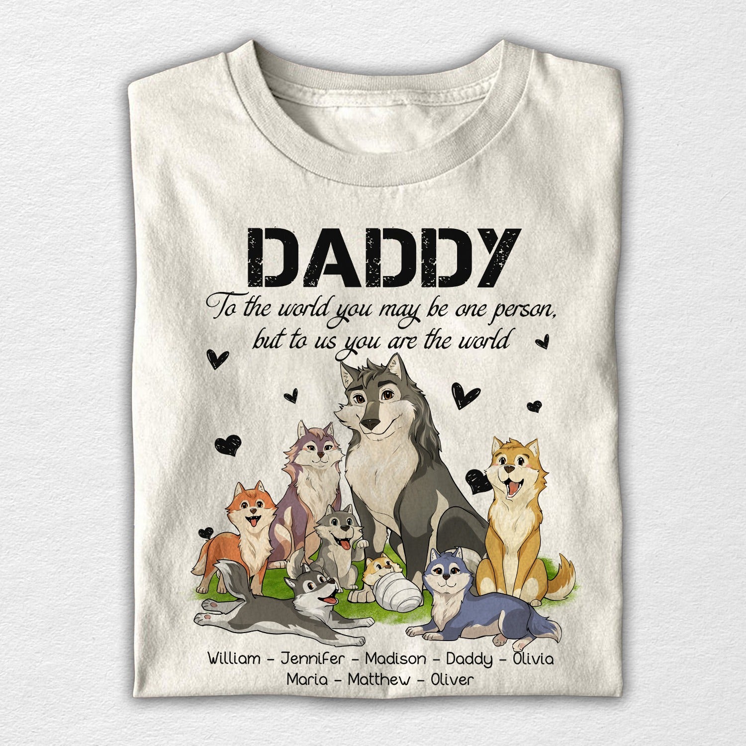 Custom Wolf Family Daddy To Us You Are The World – Father’s Day T-Shirt